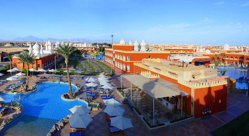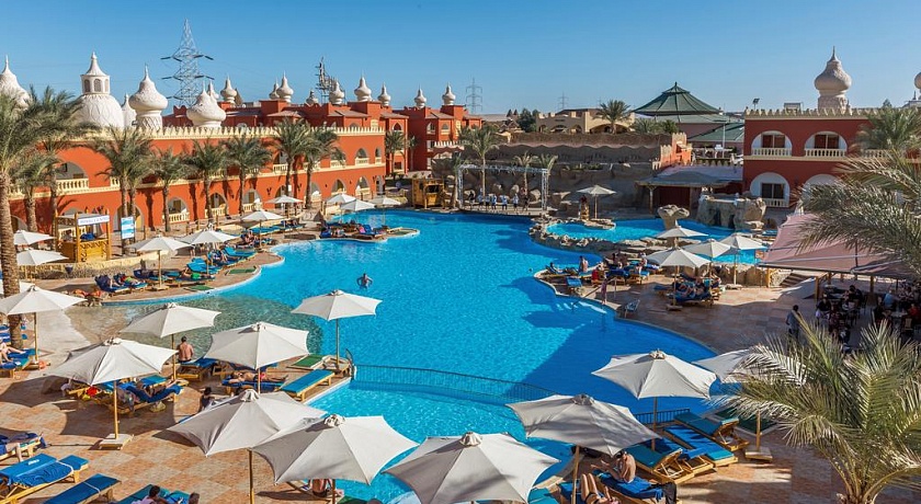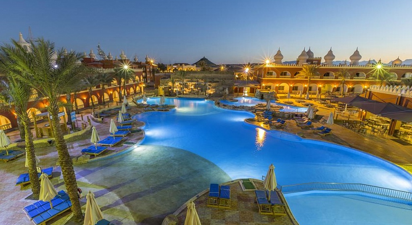 Отель расположен в 17 км от нового центра Хургады в огромном ресторанно - развлекательном комплексе "Тысяча и одна ночь". Отель стилизован под восточный дворец - двухэтажные корпуса образуют несколько внутренних двориков с бассейном, садом. Вход в отель - с главной галереи комплекса, где по вечерам кипит оживленная жизнь.