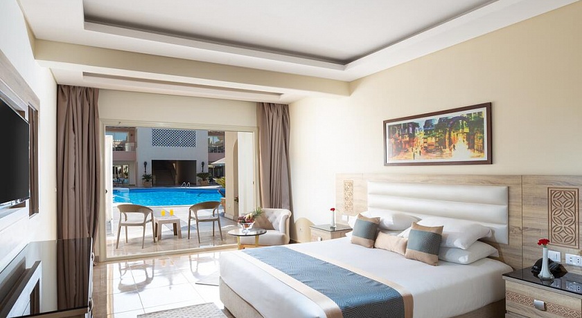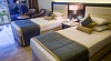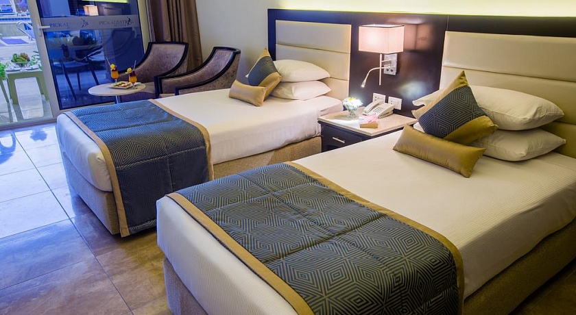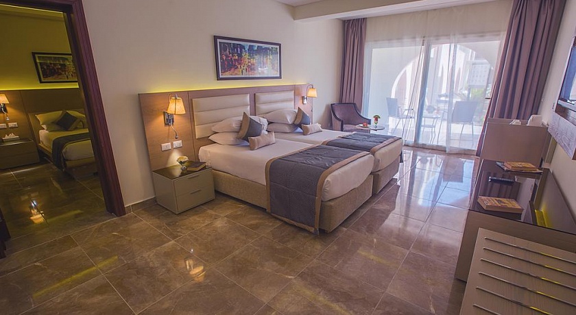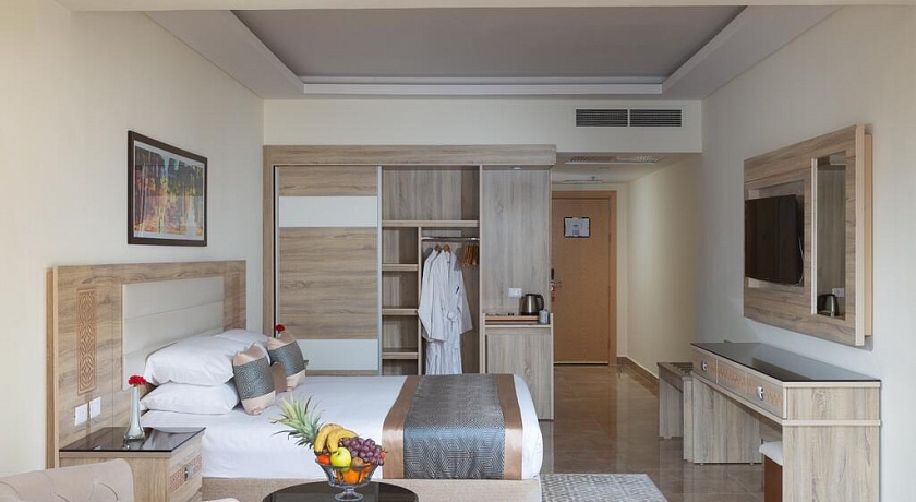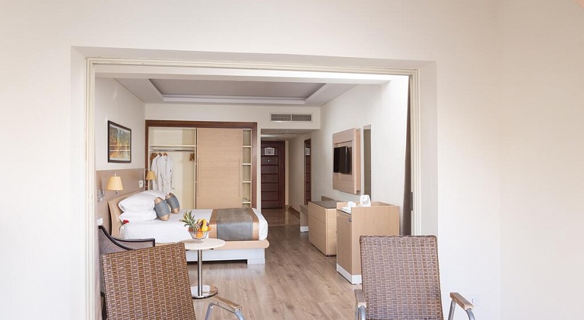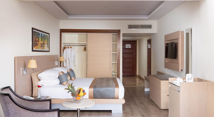 Количество номеров: 566 номеров Типы номеров: - Одноместные - Двухместные - Трехместные - Большие семейные номера (70 м), где может разместиться до 5 человек, оснащены двумя спальнями и ванной комнатой. Описание номеров: - душ - фен - центральный кондиционер с индивидуальным контролем - спутниковое ТВ (2 русских канала) - телефон - мини-бар (заполняется по запросу, платно) - сейф (в номере бесплатно) - пол - керамическая плитка - балкон или терраса (не везде) - room service 24 часа в сутки (платно) - уборка номера ежедневно - смена белья ежедневно.