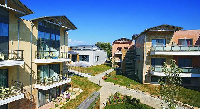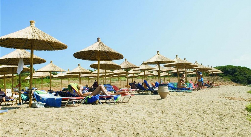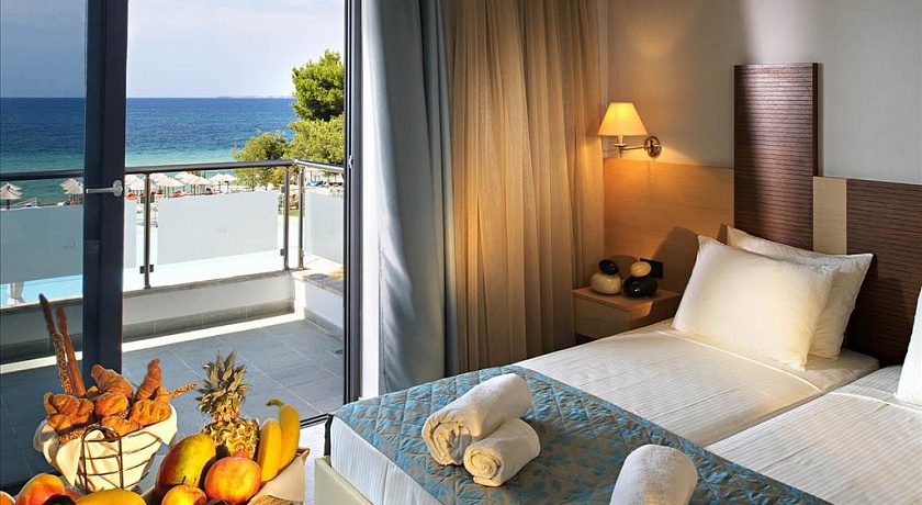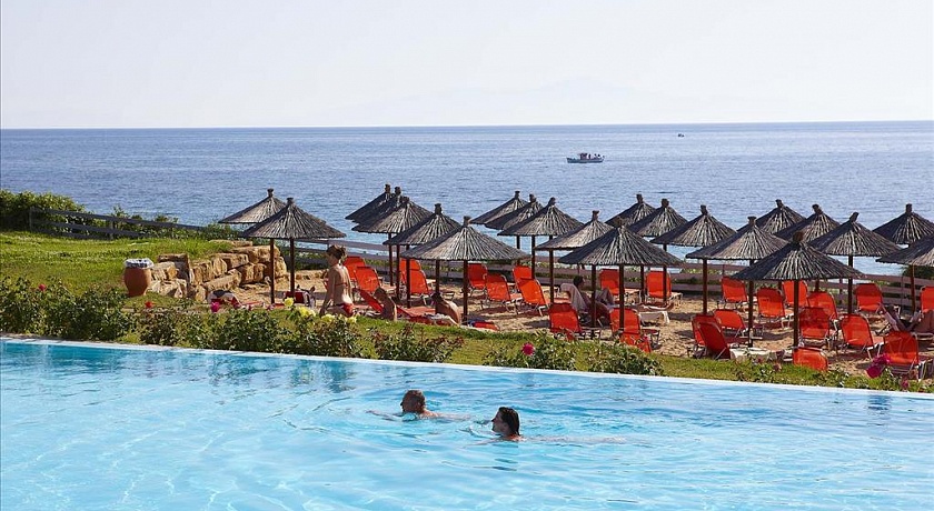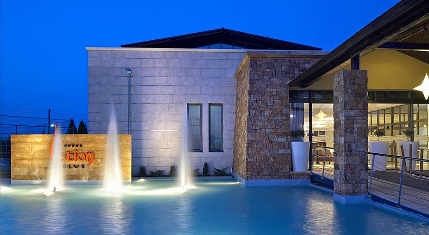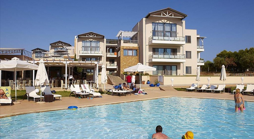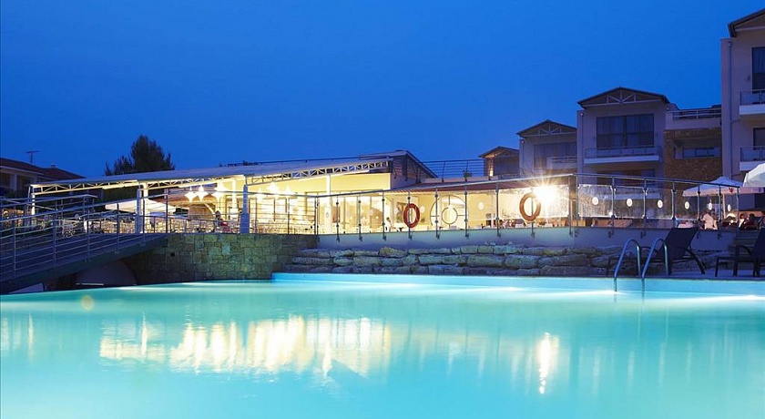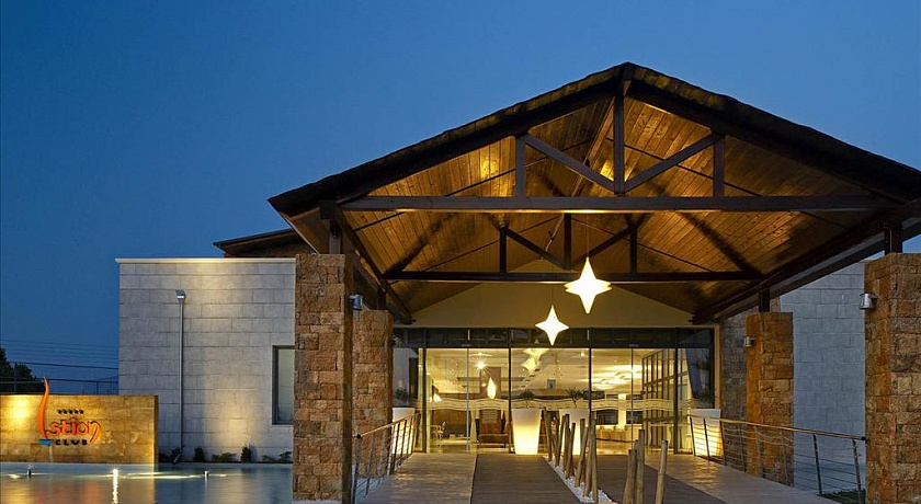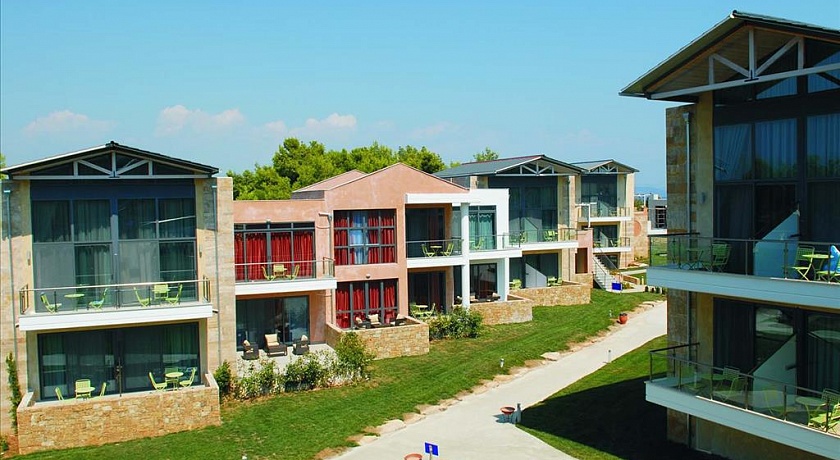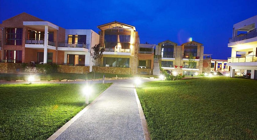 Полуостров Кассандра, у исторического канала Потидеа, в 4 км от г. Муданья, в 54 км от аэропорта «Македония» г. Салоники. Отель состоит из 8-ми трехэтажных корпусов и 3-х двухэтажных. Построен в 2008 г.