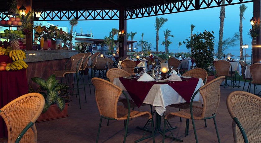 Основной ресторан "Leptis" с просторной террасой с видом на море - шведский стол, тематические вечера: завтрак 06.30-10.00, обед 12.30-15.00, ужин 19.00-22.00 3 Ala Carte ресторана: итальянский ресторан "Sirt" (1 раз бесплатно на ужин за время пребывания) 12.00-22.00, рыбный ресторан "Egyptian Nights" (за доп.плату) 12.00-22.00 гриль ресторан "Barbeque" (за доп.плату) 12.00-22.00 Египетский вечер в бедуинской палатке на пляже (за доп.плату): ежедневно, 20.00-00.00