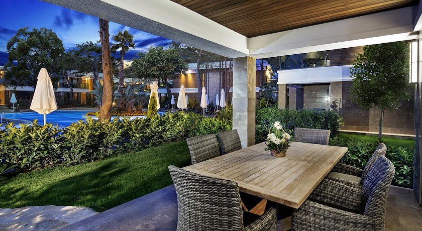 1 двухэтажная villa nirvana (индивидуальный бассейн, вид на море и на бассейн, 6 тв, парная, турецкая баня, сауна, на 1-ом этаже гостиная со столовой, кухонный уголок, 2 спальни с дверью, 2 ванные, на 2-ом этаже 2 спальни с дверью, 2 терассы, 2 ванные, макс. 8 чел., 400 м2);