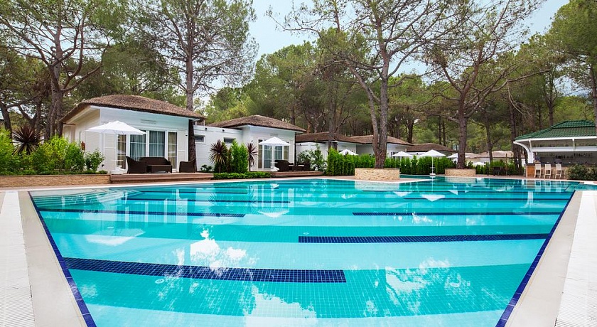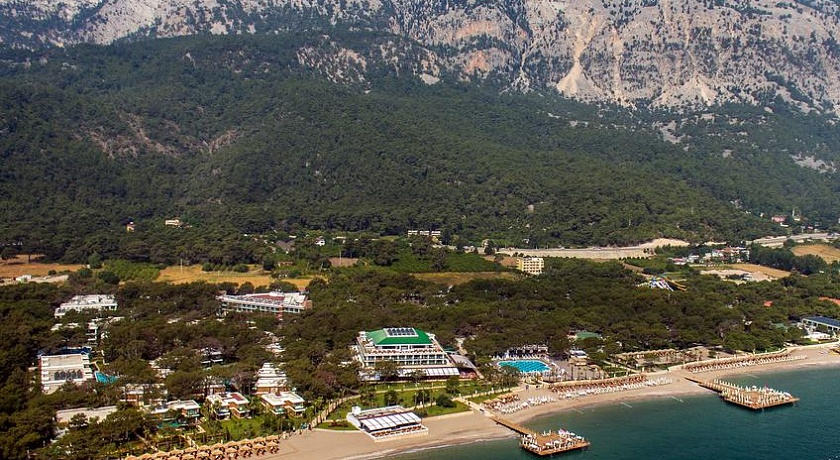 В 36 км от аэропорта г. Анталья, в 16 км от г. Кемер, в поселке Бельдиби, на самом берегу моря.
