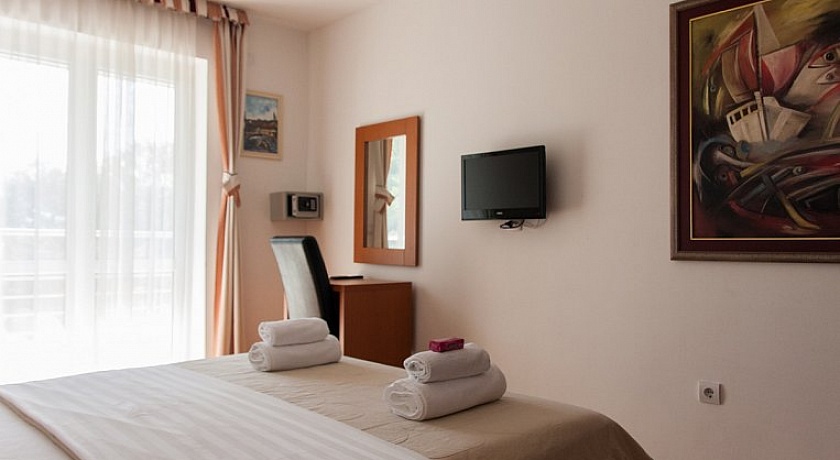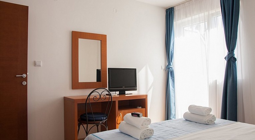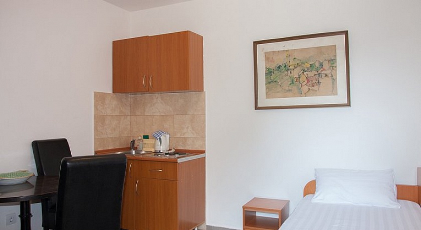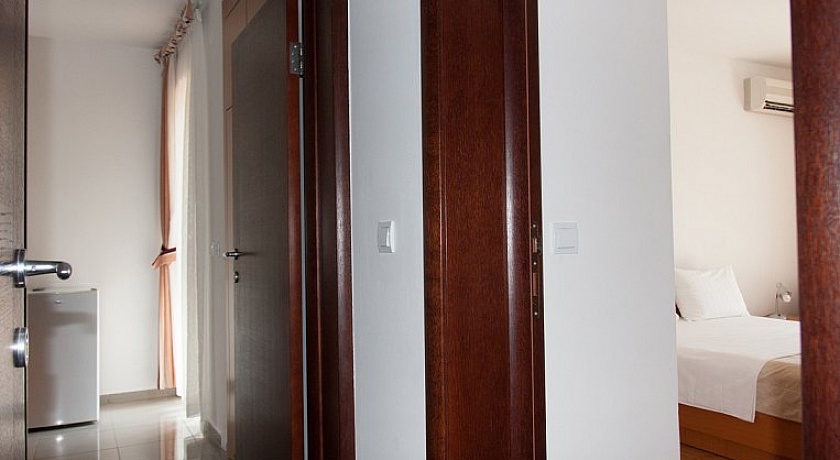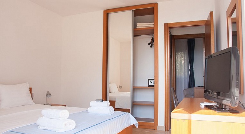 Все номера с новой мебелью, кондиционером, полностью оборудованной кухней, чайником, плазменным телевизором, душем (душевая кабина или ванная), феном, сейфом, большинство с видом на море (кроме Dbl std). Мини-ресепшн на нулевом этаже. Нет лифта Сервис: услуги прачечной и утюг за дополнительную плату (по договоренности с горничной). Примечания: Разрешено готовить. Wi-Fi интернет бесплатный. Все номера Studio 02 расположены на 4-м и 5-м этажах.