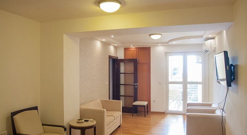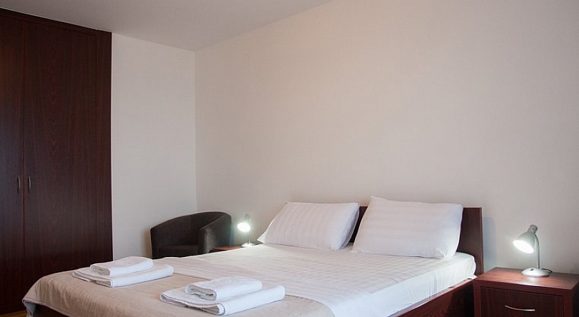 Апартаменты расположены в 150 м от пляжа, в тихом спокойном месте в окружении зелени.