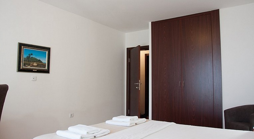 APP 03 LUX SS (№5,6): 40м2 + 2 террасы (6-8м2 и 2м2) с частичным видом на море. Гостиная с отдельной кроватью, спальня с французской кроватью, мини-кухня, ванная.